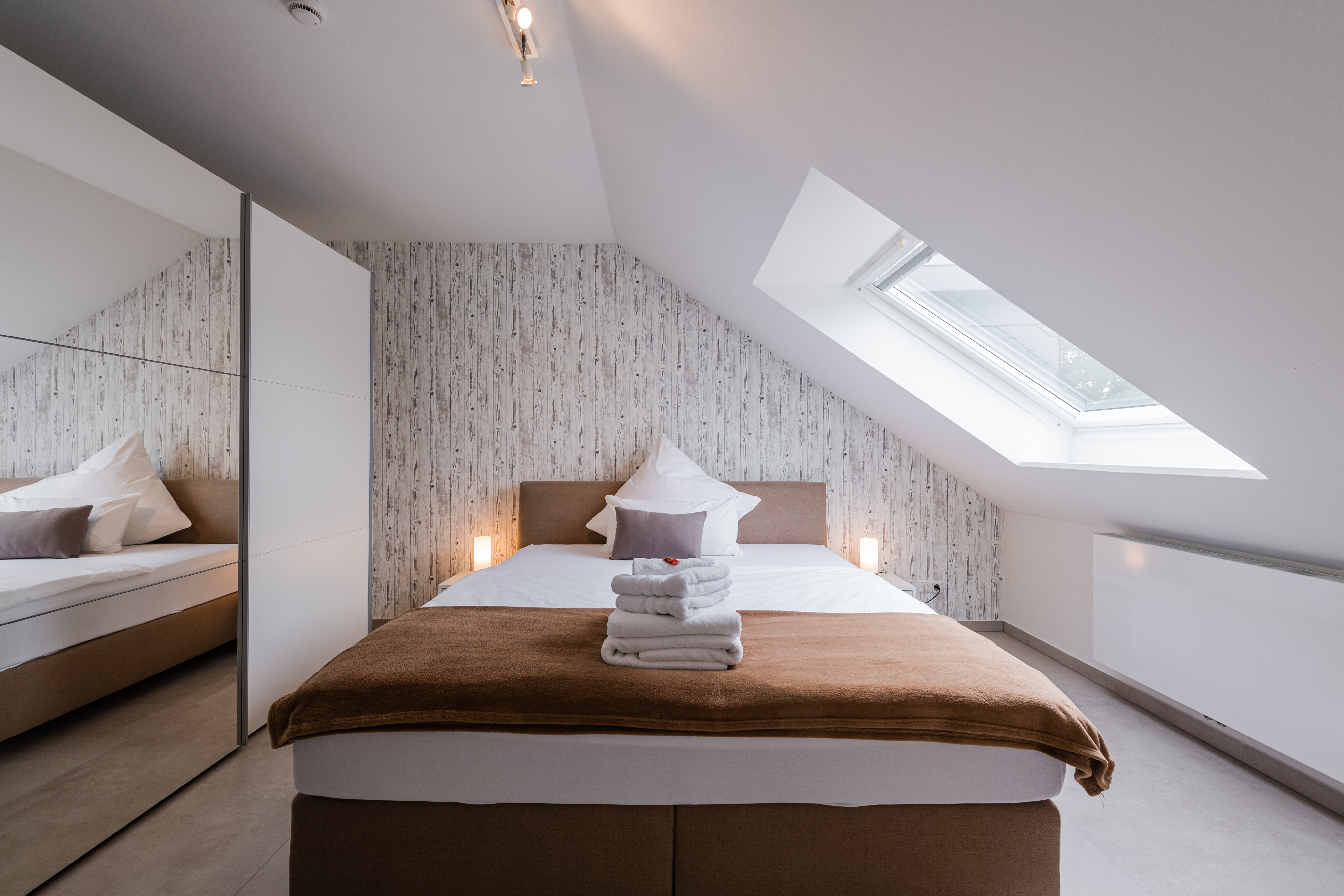 The house has a large garden that can be used by all guests. Parking spaces in the adjacent courtyard can be used free of charge. All apartments have large balconies or terraces and floor-to-ceiling windows in the living rooms.